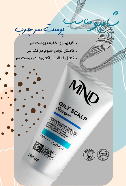 پوست سر چرب معمولا از سن بلوغ گریبانگیر افراد شده و با شدت و ضعف مختلفی زندگی آنها را تحتالشعاع خود قرار میدهد. شامپو پوست سر چرب MND با ترکیبات شوینده متنوعی تولید شده که قدرت کافی برای پاک کردن چربی مازاد روی سر را داشته و در عین حال به پوست کف سر آسیب نمیزنند. در این شامپو از مخلوط عصارههای ریشه کوهوش سیاه، عصاره برگ گزنه دوپایه و عصاره دانه خارمریم برای کنترل تولید سبوم در کف سر بهره گرفته شده که در کنار زینک پیسیای باعث متعادل شدن چربی کف سر میشوند. همچنین به دلیل اینکه زینک پیسیای قابلیت کنترل فعالیت باکتریها را دارد، این افراد میتوانند مطمئن باشند که فعالیت مضر این باکتریها مشکلی برای پوست سر آنها پیش نخواهد آورد. برای کاهش هرچه سریعتر چربی از کف سر مقداری اسید سالیسیلیک نیز در این شامپو استفاده شده تا نتیجه مورد نظر هرچه سریعتر حاصل گردد. باتوجه به اینکه آلودگی و ذرات معلق میتوانند در کف سر قرار گرفته و باعث التهاب شود از عصاره ریشه سرخارگل نیز کمک گرفته شده است تا سلولهای پوست سر در برابر آلودگی نیز محافظت شده و التهاب در کف سر ایجاد نشود.