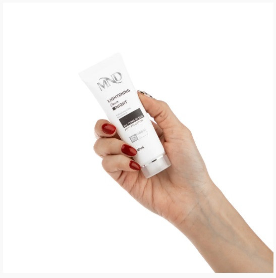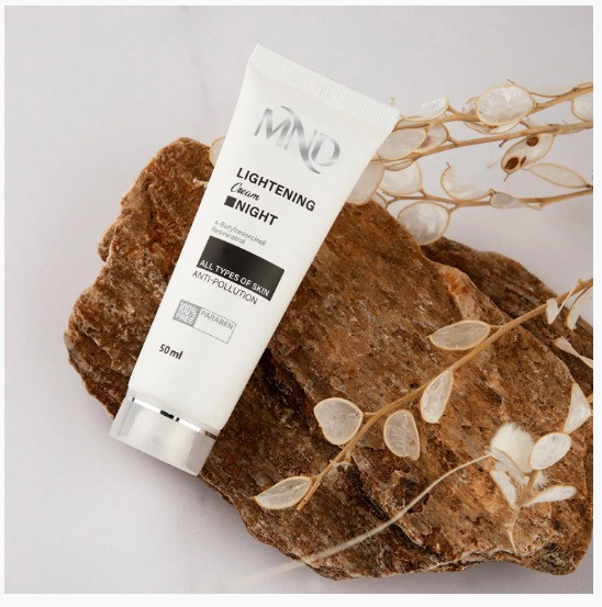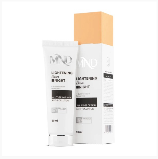 یکی از روشهای مدیریت لک و تیرگی پوست، استفاده از محصولات روشنکنندهای است که حاوی ترکیبات لایهبردار هستند. این محصولات به کم شدن سریع لایههای پوست کمک کرده و تولید ملانین را کاهش میدهند تا پوست روشنتر شود. برای تثبیت کاهش تیرگی پوست، استفاده از محصولات روز و شب روشنکننده توصیه میشود تا فقط تولید ملانین کنترل شود و پوست فرصت کافی برای ترمیم سطح خود را داشته باشد. کرم شب روشنکننده پوست MND حاوی 4-بوتیل رزورسینول و عصاره پوست درخت کاج سفید است که از ترکیبات روشنکننده بسیار مناسب پوست هستند و در کنار رزوراترول، که کنترلکننده تولید و جابجایی ملانوزومهاست، میتوانند تولید و جابجایی ملانین در پوست را کنترل کنند. این محصول به دلیل بهرهبری از عصاره جو، به تسریع تشکیل لایههای جدید بدون ملانین اضافی در سطح پوست کمک کرده و پوستی یکدست و روشن را به ارمغان میآورد. به دلیل تأثیر آلودگیهای محیطی پیرامون انسان که میتوانند باعث التهاب و قرمزی پوست شوند، از عصاره برگ انگور نیز در این محصول استفاده شده تا ذرات معلق و... باعث تحریک و ناراحتی پوست نشوند و محافظت درستی از پوست در برابر آلودگی انجام شود.