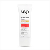 تابش طولانی مدت نور خورشید به پوست، یکی از عوامل پیری زودرس پوست است. در اصل اشعههای UVA و UVB خورشید با ایجاد رادیکالهای آزاد در پوست، موجب آسیب دیدن ساختارهای حیاتی پوست شده و ایجاد لک و چین و چروک را تسریع میکنند. همچنین تحقیقات علمی اخیر نشان دادهاند که طیف مادون قرمز ساطع شده از خورشید و نور آبی منتشر شده از لوازم الکترونیکی (رایانه، گوشی همراه، ...) هم در آسیب دیدن پوست نقش دارند، درنتیجه برای تولید یک محصول ضدآفتاب کامل، مقابله با این اشعهها نیز باید مورد توجه قرار بگیرد. این کرم ضدآفتاب MND با فاکتور حفاظتی 90، بهصورت فاقد پارابن، به رنگ بژ تیره و مناسب برای پوست خشک تولید شده و با بهرهگیری از ترکیبات و فیلترهای مناسب قادر است مانع صدمه دیدن پوست توسط اشعههای فوقالذکر شود.