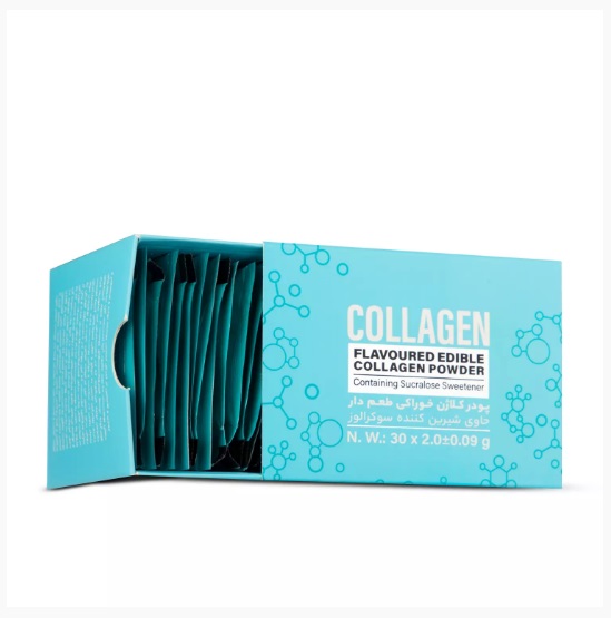 پودر کلاژن خوراکی طعم دار حاوی شیرین کننده سوکرالوز بسته 30 عددی