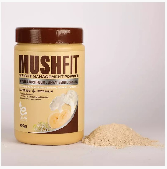 ماش فیت پودر قارچ صدفی به همراه پودر جوانه گندم و پودر موز 450 گرمی