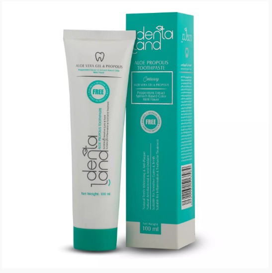 ژل آلوئه ورای طبیعی بکار رفته در خمیر دندان آلوپروپولیس دنتالند التهاب لثه را کم کرده و موجب کاهش خشکی دهان میشود. این ژل طبیعی همچنین قادر است از فعالیت باکتریهای ایجادکننده بوی نامطبوع دهان جلوگیری کند که بسیار در خوشبو شدن نفس فرد تاثیرگذار است. این خمیردندان عصاره بره موم (پروپولیس) که سرشار از ویتامینها و مواد معدنی مفید است را نیز در خود دارد که باعث تقویت مینا و جلوگیری از پوسیدگی دندان شده، سلامت لثه را تقویت کرده و به عنوان یک ماده طبیعی با قابلیت ضد باکتری بسیار زیاد باعث از بین رفتن التهابات و بیماریهای لثه میشود. باید خاطرنشان شد که رنگ خوراکی طبیعی بکار رفته در این محصول نیز از گیاه اسفناج بدست آمده است که علاوه بر طبیعی بودن دارای خواص آنتی اکسیدانی میباشد و باعث افزایش کارایی این خمیردندان شده است.