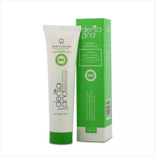 خمیردندان گیاهی دنتالند (طعم ریحان) با ارائه فرمولاسیونی جدید برپایه عسل، بره موم و منابع گیاهی ضمن برطرف نمودن تمام نیازهای مربوط به بهداشت دهان و دندان اعم از کاهش پوسیدگی و جرم، سفیدکنندگی طبیعی، کاهش التهاب، خونریزی و حساسیت لثههای حساس، با حفظ و افزایش رطوبت دهان از فعالیت باکتریها و ایجاد بوی نامطبوع هم جلوگیری مینماید. علاوه بر این در طراحی و فرمولاسیون خمیردندان گیاهی دنتالند مجموعهای از عصارههای طبیعی گیاهی مختلف همچون ژل آلوئه ورا، عصارههای میخک، ریحان، درخت چای، گل صابونی، چوب مسواک، استویا، هل سبز، شیرین بیان، زنجبیل با ویژگی های اثبات شدهای مانند کف کنندگی طبیعی، سایندگی طبیعی، آنتی باکتریال، کاهش دهنده التهاب و درد و شیرین گنندگی طبیعی استفاده شده که باعث حفظ بهداشت دهان و دندان میشوند. این خمیردندان زیست تخریبپذیر گیاهی با حذف فلوراید، عامل کفکننده سنتزی، رنگ ، نگهدارنده ، اسانس ، و شیرین کننده مصنوعی و جایگزینی با عصاره های گیاهی مختلف علاوه بر حفظ بهداشت دهان و دندان، تلاش زیادی در جهت حفظ سلامت عمومی افراد و همچنین محیط زیست داشته و محصول نهایی را به یک فرآورده فراسودمند تبدیل نموده است. خمیردندان گیاهی حاوی عصارههای میخک و درخت چای دارای خواص آنتی باکتریال و آنتی اکسیدان طبیعی بوده و مناسب لثه و دندان های حساس و تسکین دندان درد میباشد.