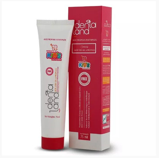 خمیردندان کودک آلوپروپولیس حاوی ژل آلوئهورا و بره موم با طعم آبنبات نعناعی دنتالند 75 میلی لیتر